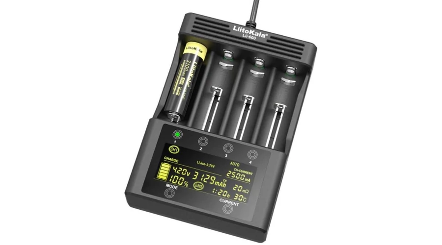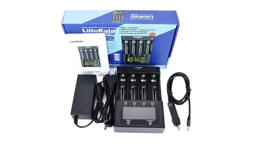 - 1db négycsatornás LiitoKala Lii-600 töltő