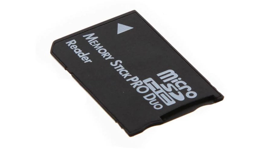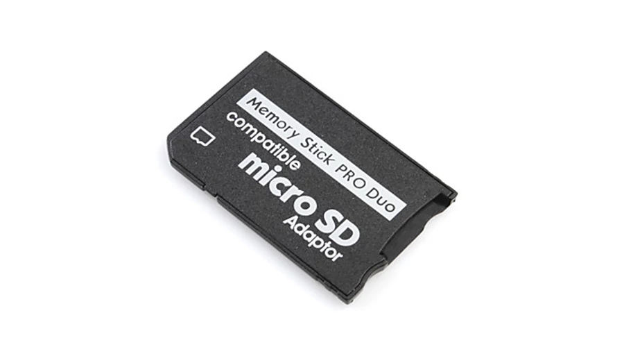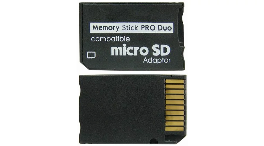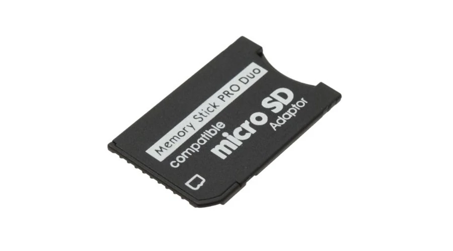 MicroSD to Memory Stick PRO Duo átalakító adapter. Az adapter segítségével MicroSD memóriakártya alakítható át Memory Stick PRO Duo kártya méretűvé.