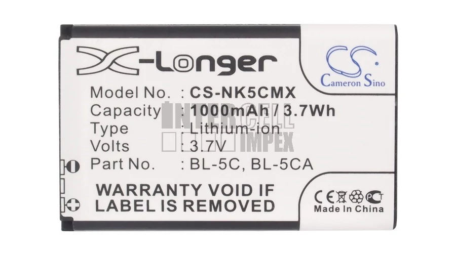 Nokia Home BL-5C 5CA 3.7V 1000mAh 3.70Wh Li-Ion bébiőr akkumulátor utángyártott.